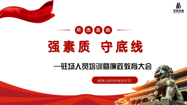 6月7日,浙江華杰工程咨詢(xún)有限公司舉辦廉政、安全生產(chǎn)教育與工程管理專(zhuān)項(xiàng)培訓(xùn),公司領(lǐng)導(dǎo)班子、各項(xiàng)目駐場(chǎng)人員百余人參加。培訓(xùn)圍繞廉政、安全生產(chǎn)教育和專(zhuān)業(yè)賦能展開(kāi)。...