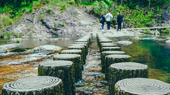 第一天,经过数小时的车程,大家来到了第一站铜铃山国家森林公园,公园境内拥有上万亩的原始次生林,为浙南保存最好的原始阔叶林。其中以铜铃山峡历经万年激流旋冲而成的壶穴奇观最为著名,峡内瀑连瀑,潭叠潭,湍流雷轰,震心慑憾,峡谷魔幻,称为“华夏一绝”。 森林栈道有500多米长,林间空气中弥漫着树木散发出的清香,一路上,栈道忽上忽下,弯弯曲曲,鸟啾虫鸣,斑斓树叶,令人顿生一种别样的愉悦与惬意。