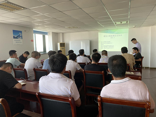 2021年7月31日上午,浙江华杰工程咨询有限公司监理部在公司会议室组织了一场主题为《原材料见证取样与检测相关知识》的培训。公司总经理王天华、副总徐宏伟、监理部副主任胡俊及现场监理人员30余人参加。