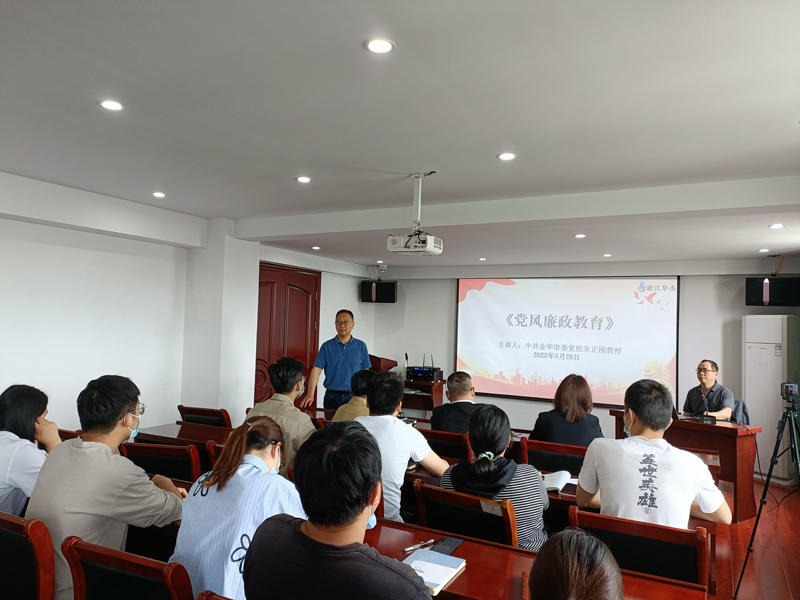 为了进一步强化员工法纪意识,促进廉洁从业,助推“清廉企业”创建。5月28日上午,公司党支部特邀中共金华市委党校朱正刚教授给大家讲授一场以《党风廉政教育》为主题的专题讲座。因受疫情等因素影响,公司全体党员、管理人员及代理、经营人员在公司会议室现场参加培训,其他员工则通过公司钉钉群同步直播的方式参加收看。