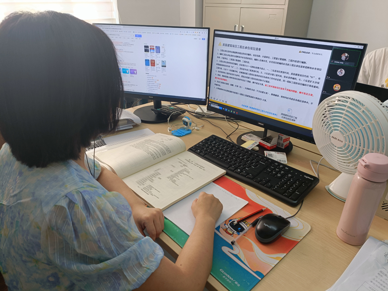 为进一步加强员工的专业知识,提升相关业务能力。6月7日上午,公司邀请杭州品茗安控信息技术股份有限公司郑金江总工程师以“共抗疫情 提升能力”为主题,对《浙江省工程总承包计价规则(2018版)》内容进行了培训和讲解。因受疫情等因素影响,公司组织部分造价部人员在公司会议室现场参加培训,其他员工则通过公司腾讯视频同步直播的方式收听收看。