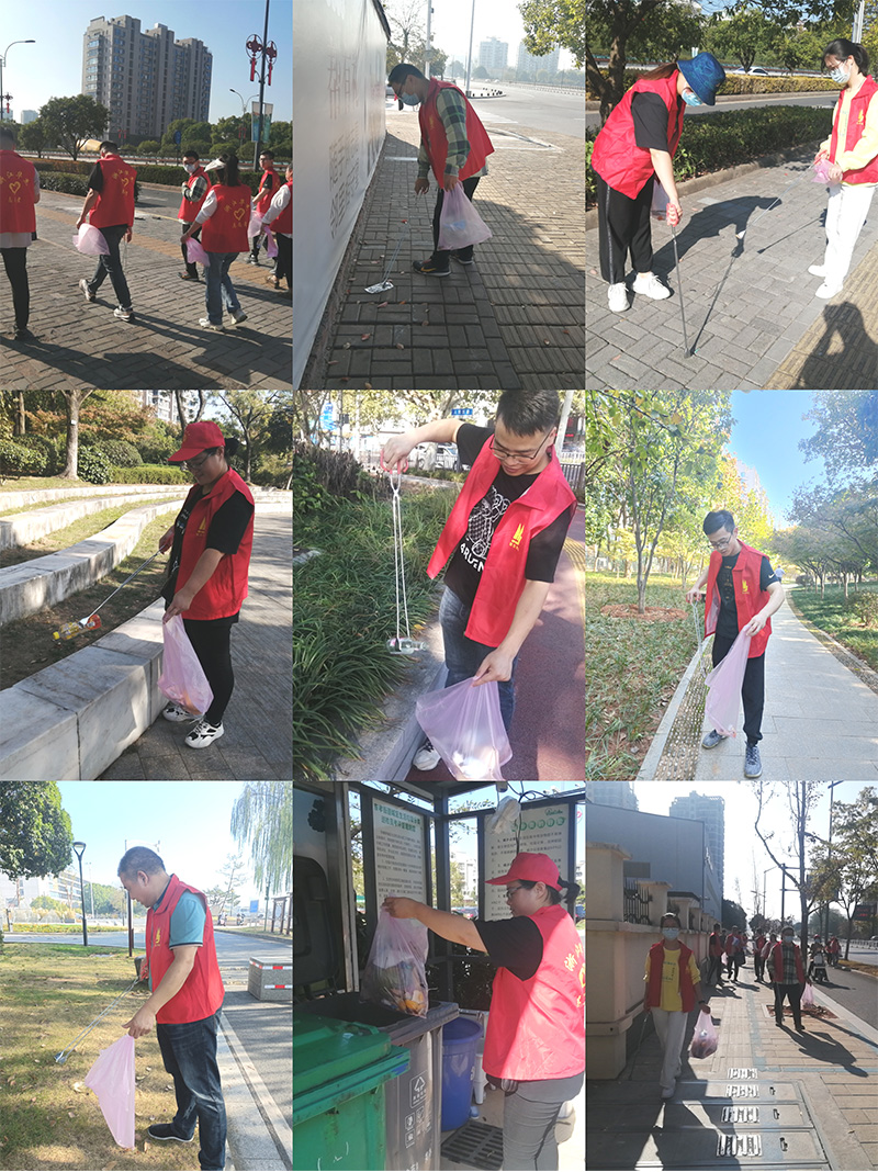公司工会主席张小弟、办公室主任陆惠芬和志愿者们一同身穿红色爱心马甲,一手拿着钳子,一手拎着垃圾袋,捡起路边草丛里、绿化带的塑料袋、纸屑、废弃物、动物粪便、烟头等垃圾,志愿者们不嫌脏、不怕累,每一处卫生死角都不放过,引起了路人的频频点赞。