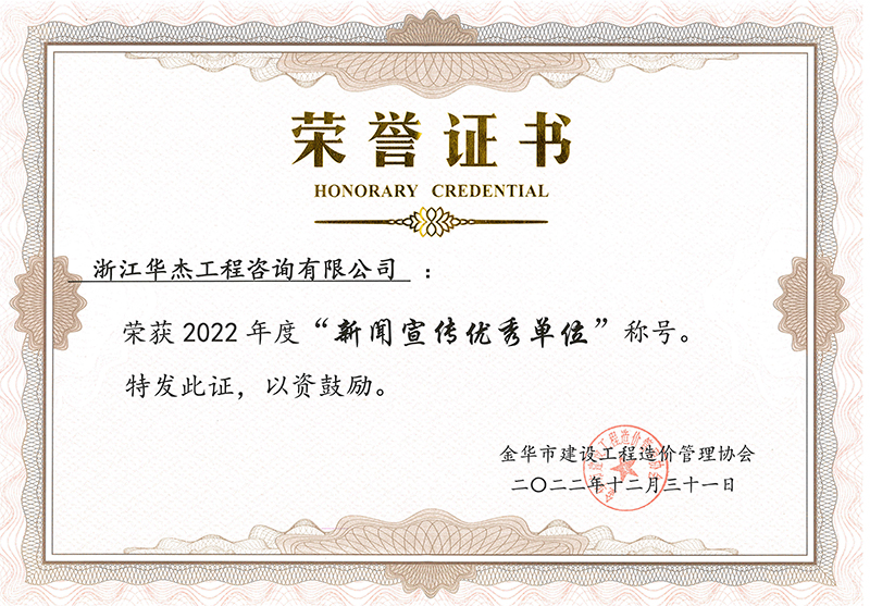 一、金华市建设工程造价管理协会2022年度“新闻宣传优秀单位”: