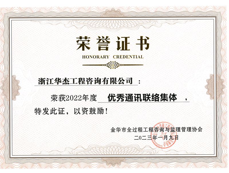 二、金华市全过程工程咨询与监理管理协会2022年度“优秀通讯联络集体”: