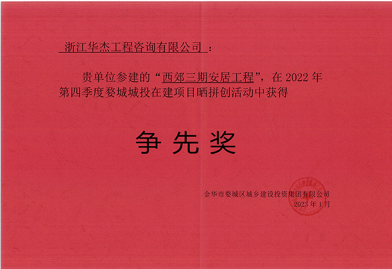三、参建的“西郊三期安居工程”在2022年度第四季度婺城城投在建项目晒评创活动中获得“争先奖”: