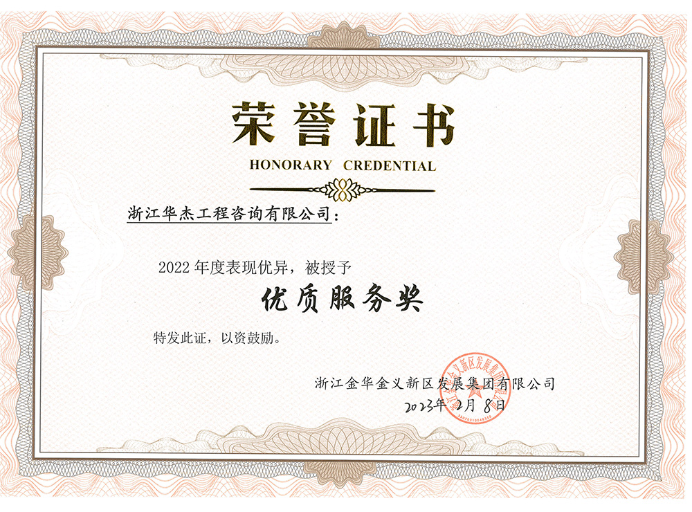 兔跃千山传喜讯,龙腾万里展英才。2月8日上午我公司受邀参加金义发展集团2023年工作动员大会,会上宣布浙江华杰工程咨询有限公司荣获优质服务奖。