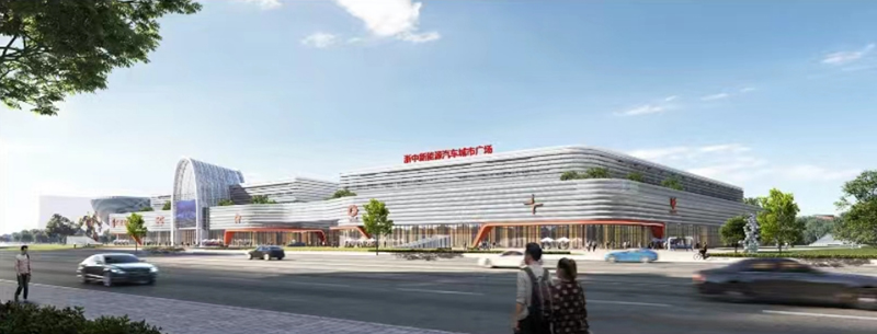 浙中新能源汽车城市广场项目工程用地面积63540.4平方米 (合95.31亩) ,毗邻汽车城、汽配城、车管所和华东农产品物流中心。地上计容建筑面积约138798.31平方米,地上不计容建筑面积约151.32平方米,地下建筑面积约58332.36平方米,总建筑面积约197281.99平方米;三栋综合楼(地上4层,地下1层);建筑高度约24米。建筑功能为新能源汽车销售、展示、体验、售后和精品二手车销售、汽车修理、汽车美容、商业、餐饮、办公写字楼、公寓等汽服产业链、配套项目。项目投资约10亿元,建成后将成为浙中一流的现代汽车商业综合体,未来城市汽车商贸的新标杆。